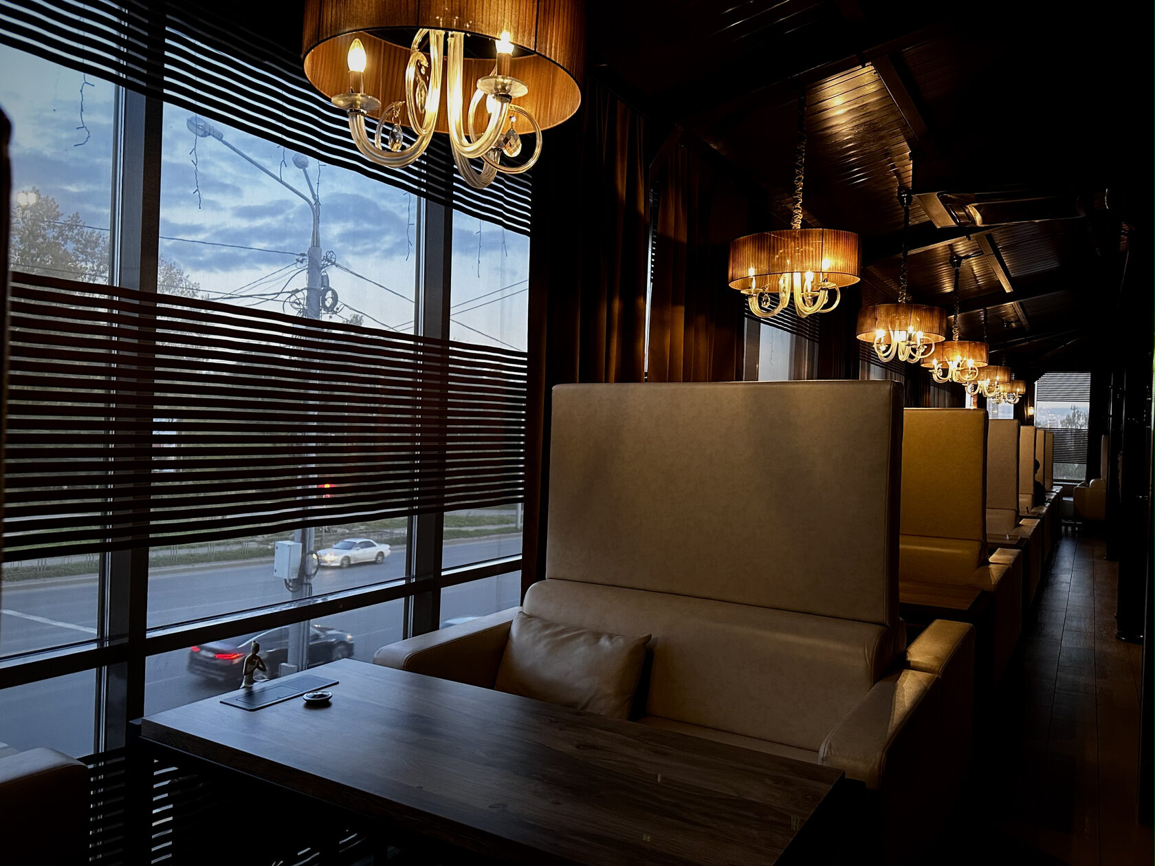 Из окон зала и VIP-пространств открывается отличный вид на ночной город, Комсомольский проспект и переулок Мариинский. Это место, где можно почувствовать атмосферу Томска вечером, оставаясь в удобной и стильной лаунж-зоне.